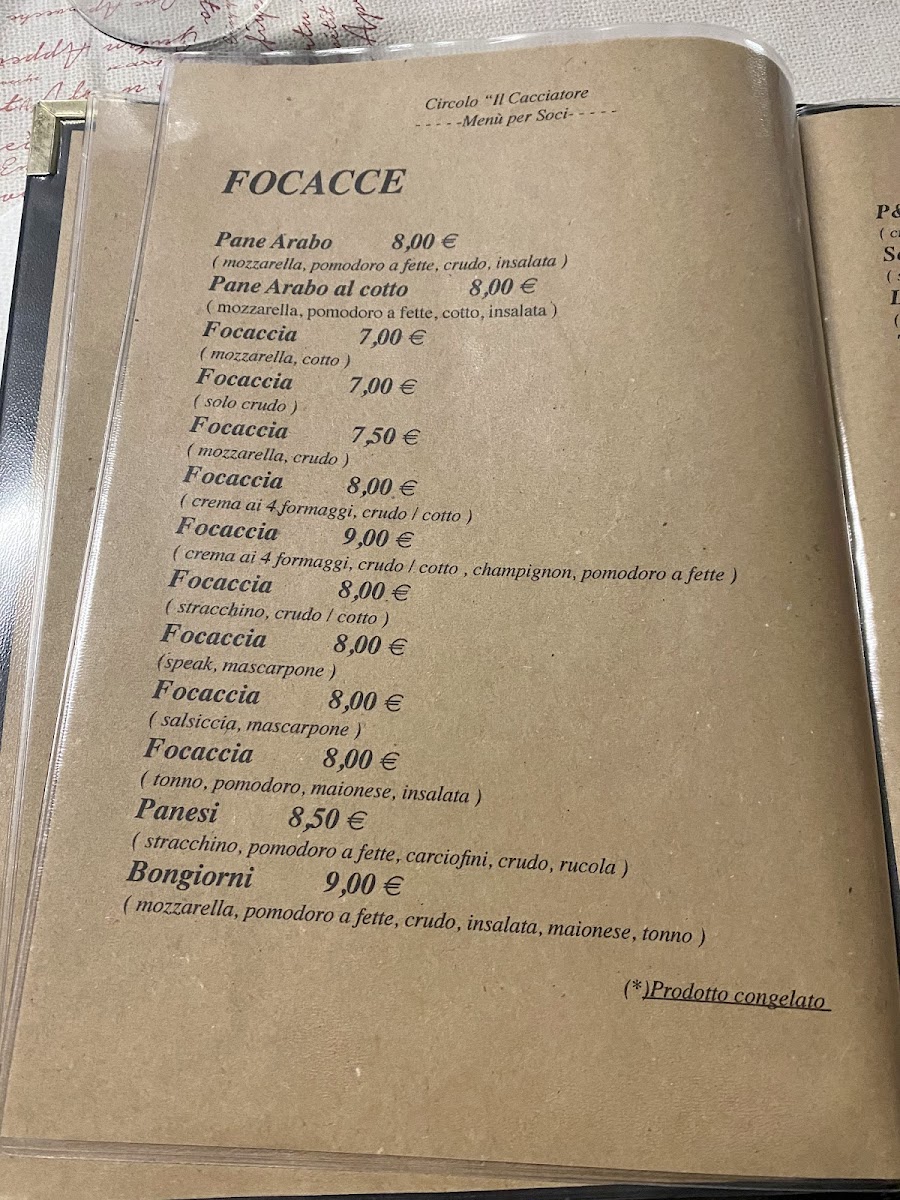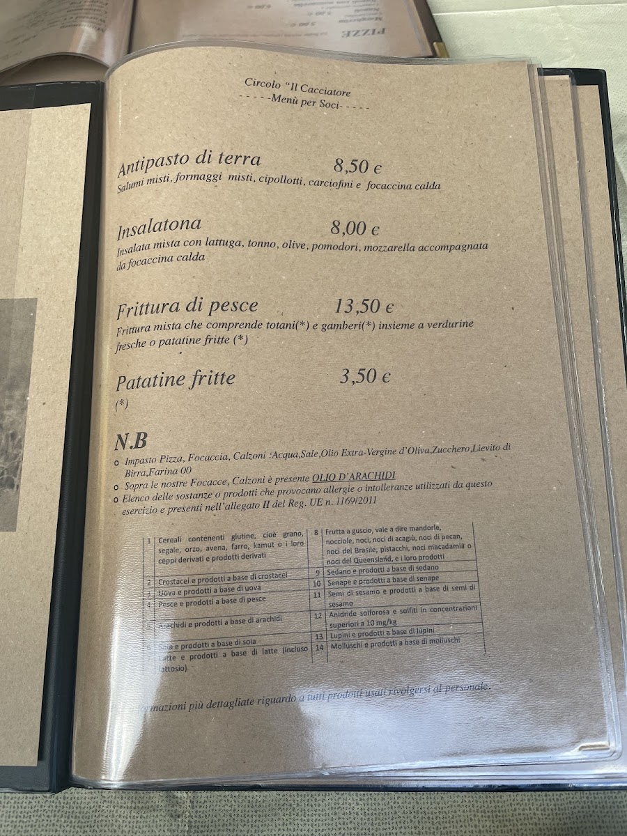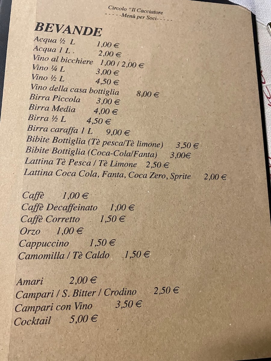 Circolo Il Cacciatore Menu