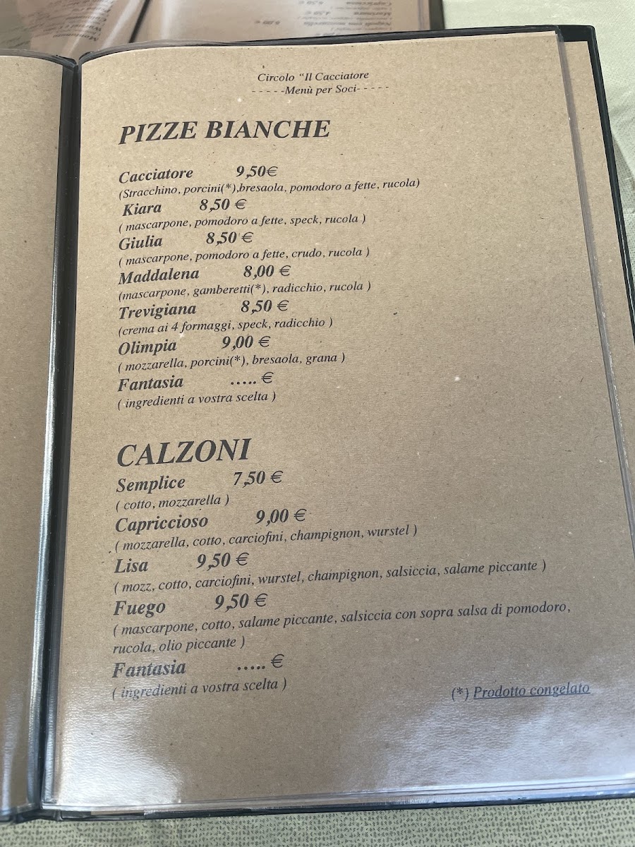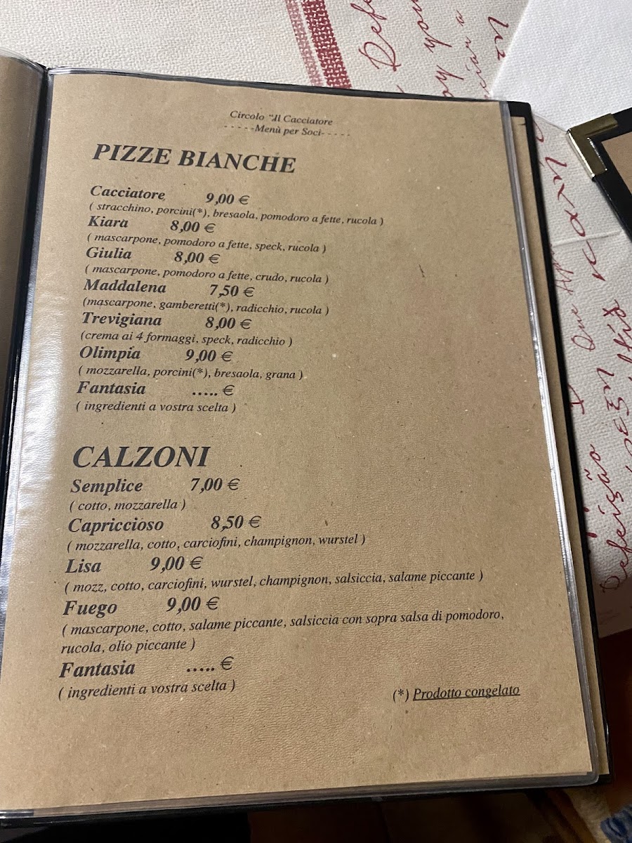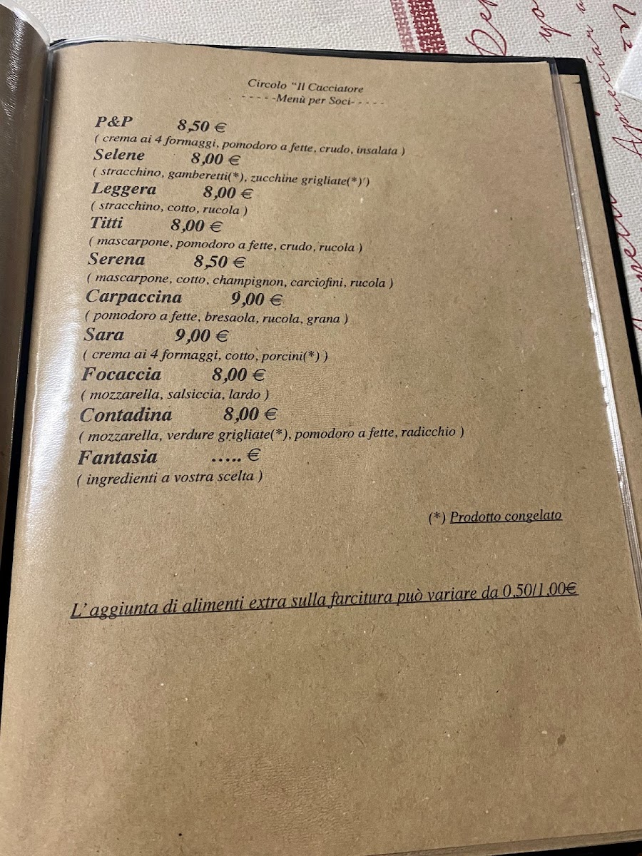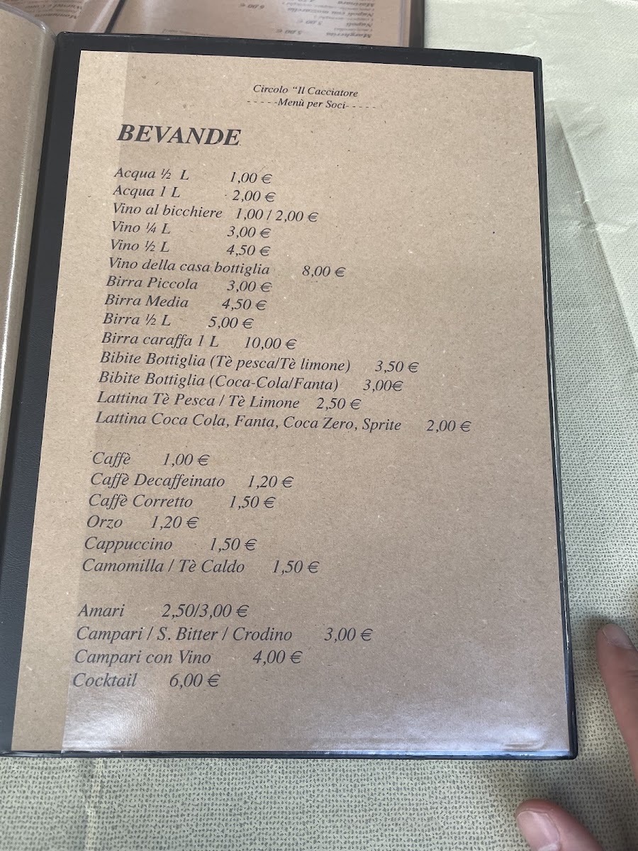 Circolo Il Cacciatore Menu